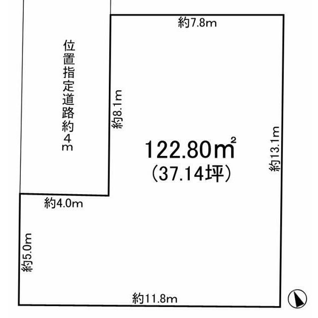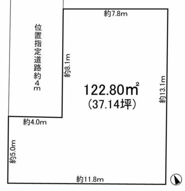 | 接道状況 | 西4.0m 私道 接面8.1m 位置指定あり 北4.0m 私道 接面4.0m 位置指定あり | 地目 | 宅地 |